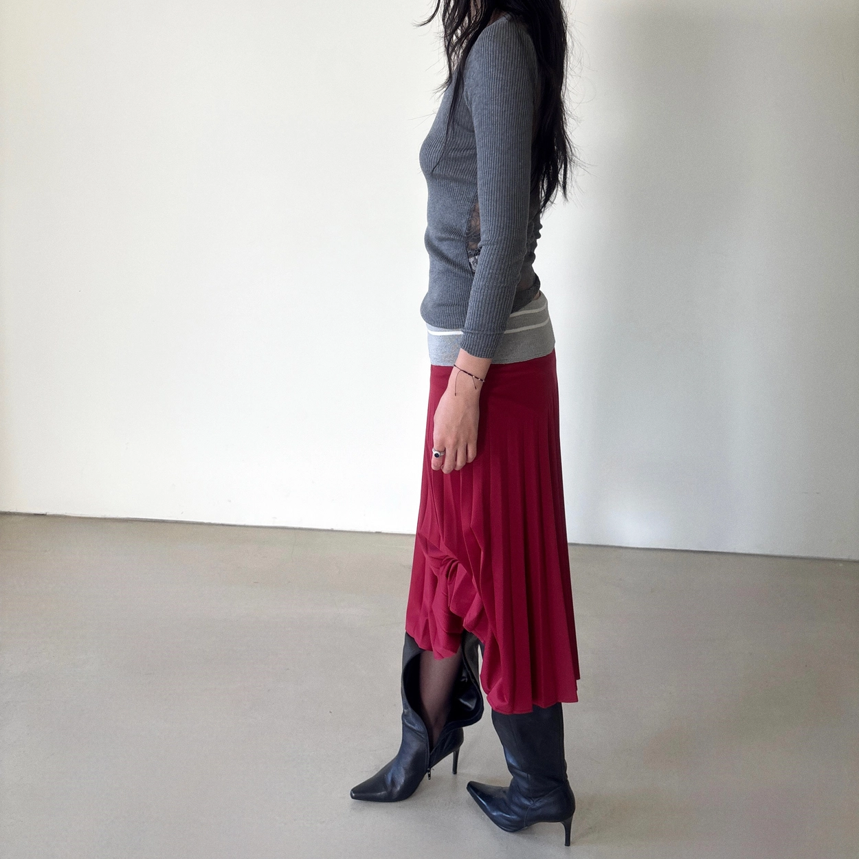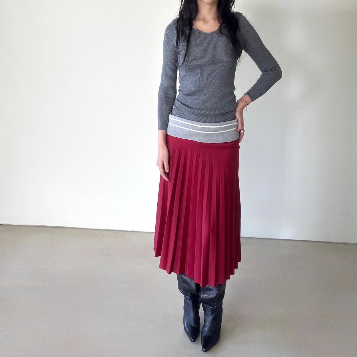 NOLITA Italy Ribbed-Waist Pleated Skirt